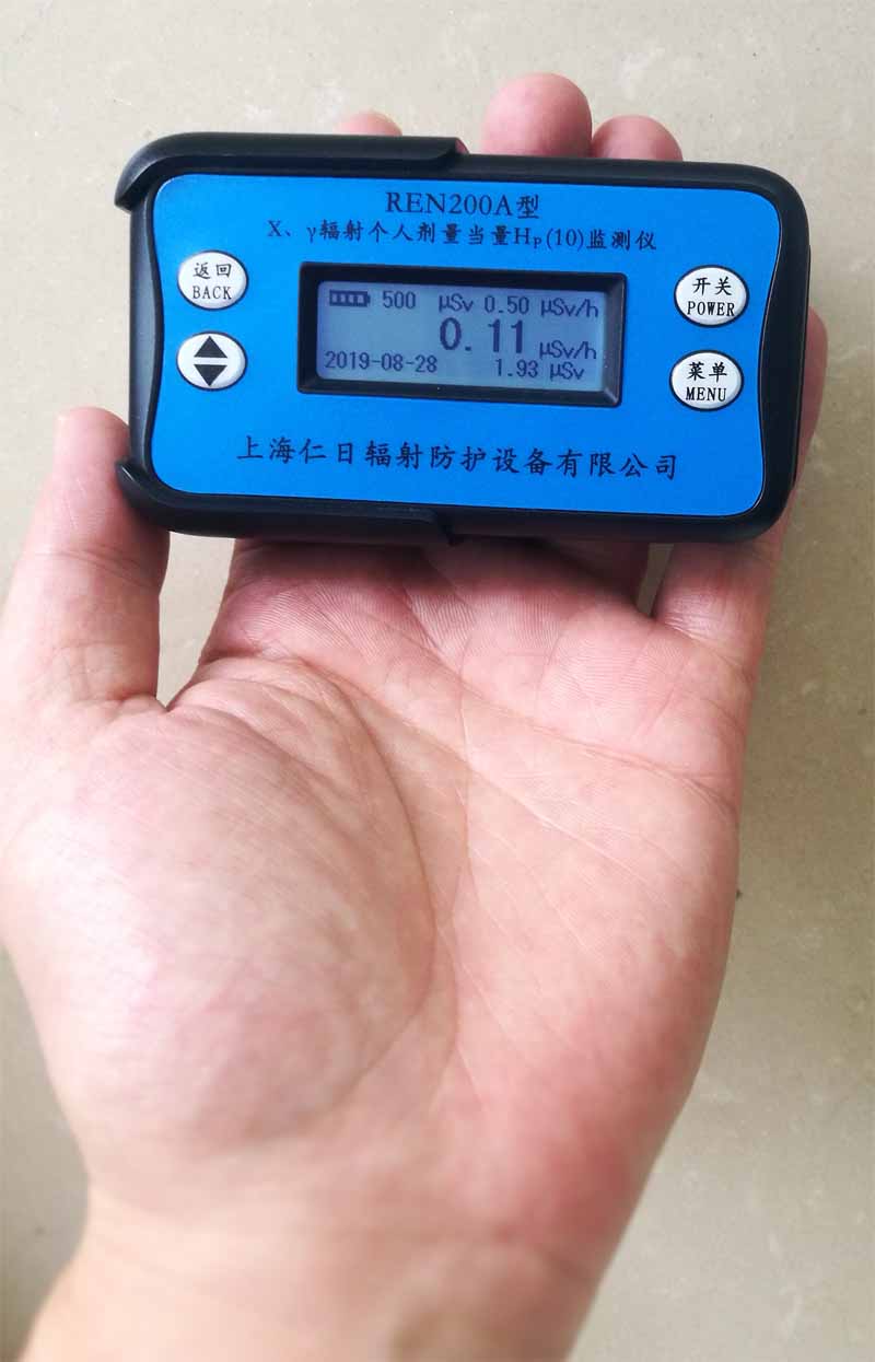 REN200A型X、γ輻射個人劑量當量HP(10)監測儀(簡稱:個人劑量報警儀)內置高靈敏度蓋格計數管為探測器,主要用來監測各種放射性工作場所的X、γ以及硬β射線的輻射,具有響應快,測量范圍寬的特點。能顯示工作場所的劑量當量率和累積劑量,更換電池時,日期及累積數據能永久保存?蛇x配RenRiPersonal個人劑量管理軟件,該軟件可存儲多個人的歷史數據,能記錄日累積、月累積、年累積、輻照時長、計算平均劑量率、扣除或不扣除本底輻射,且以文字和圖譜的方式展現數據。廣泛應用于核電站、加速器、鋼鐵、化工、同位素應用、工業X、γ無損探傷、放射醫療、鈷源治療、γ輻照、放射性實驗室、核設施周圍環境監測等領域中的工作人員進行個人安全防護監測及放射性提示。